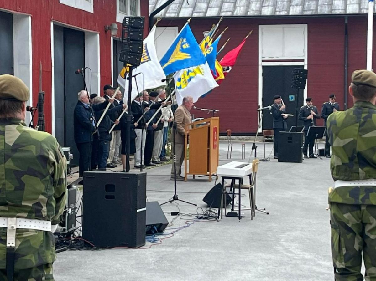 Gotlands lottakår deltog med fanvakt på nationaldagsfirandet i Tingstäde utanför Gotlands Försvarsmuseum. P18:s musikkår stod för musiken, tal hölls av landshövding Charlotte Petri Gornitzka. Vi klarade oss innan regnet kom.