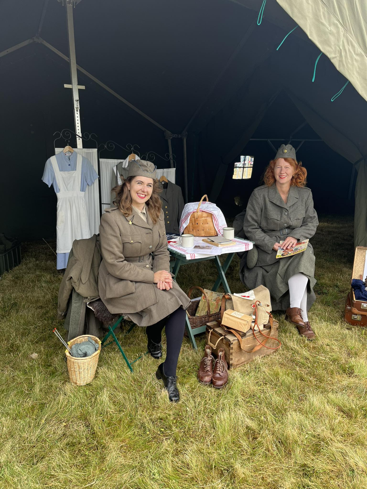 I Västervik har vi haft en kåraktivitet tillsammans med den nybildade lottagruppen, Västervik-Tjust. Vi var många på plats, från flera orter, för att informera om lottorna, dela ut informationsmtrl och visade upp både civila och militära Lottor. Väldigt trevligt var det också att två Lottor från Västervik-Tjust lottagrupp helt gick in i den historiska resan och visade upp hur en Lotta såg ut förr och vilken utrustning som fanns då (se bild)