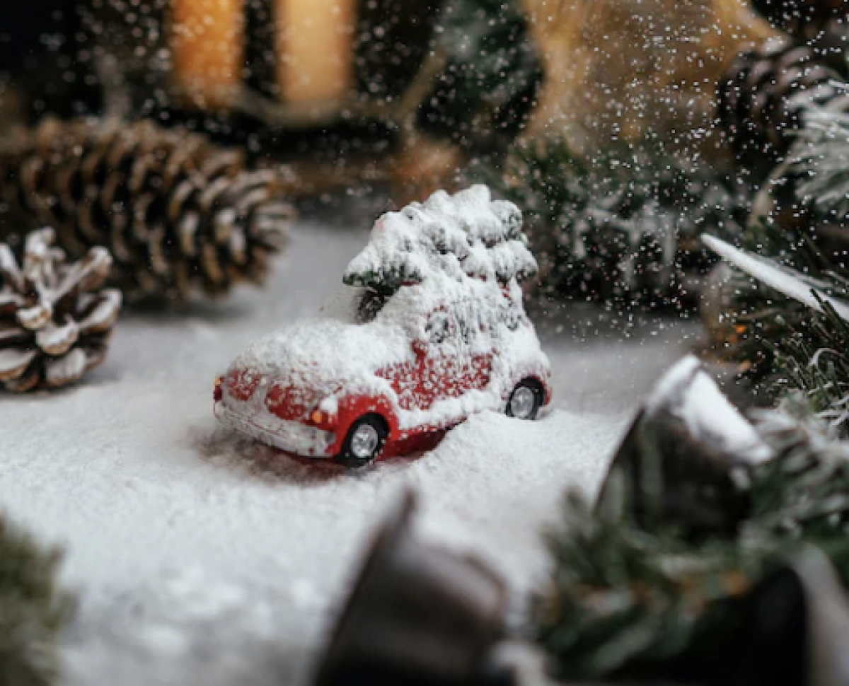 Liten bil i miniatyrsnölandskap