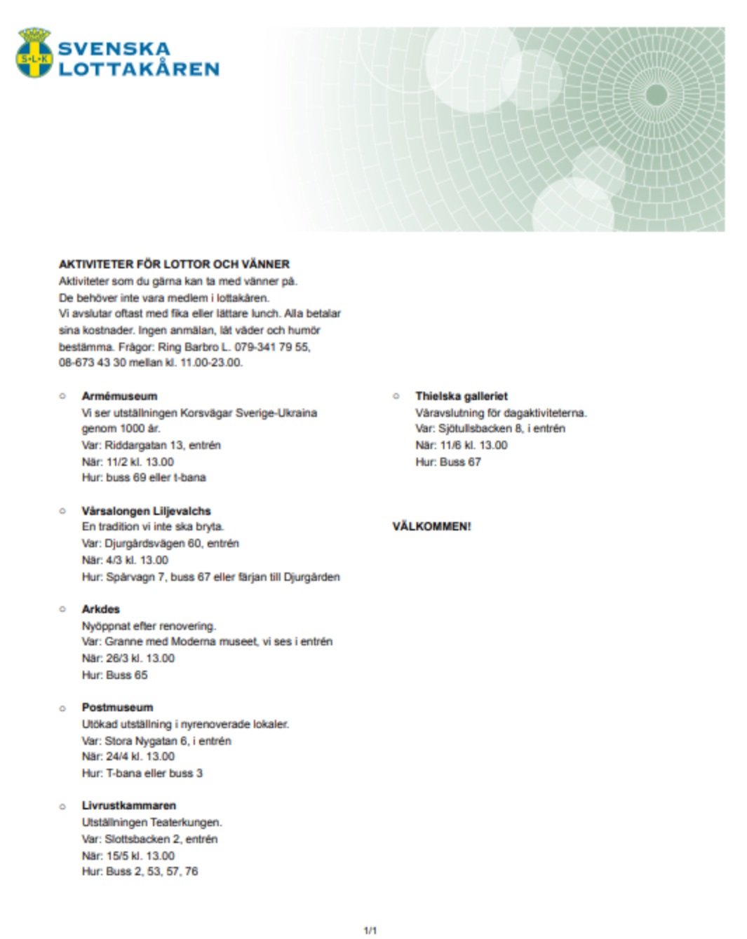Flera intressanta aktiviteter under våren för daglediga lottor