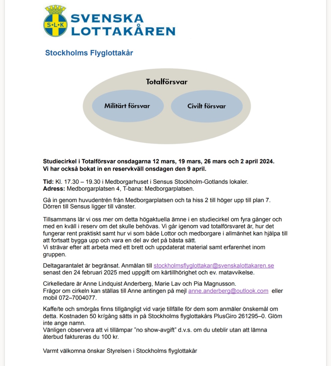 Under 4 tillfällen i mars till april lärvi oss tillsammans om Totalförsvaret